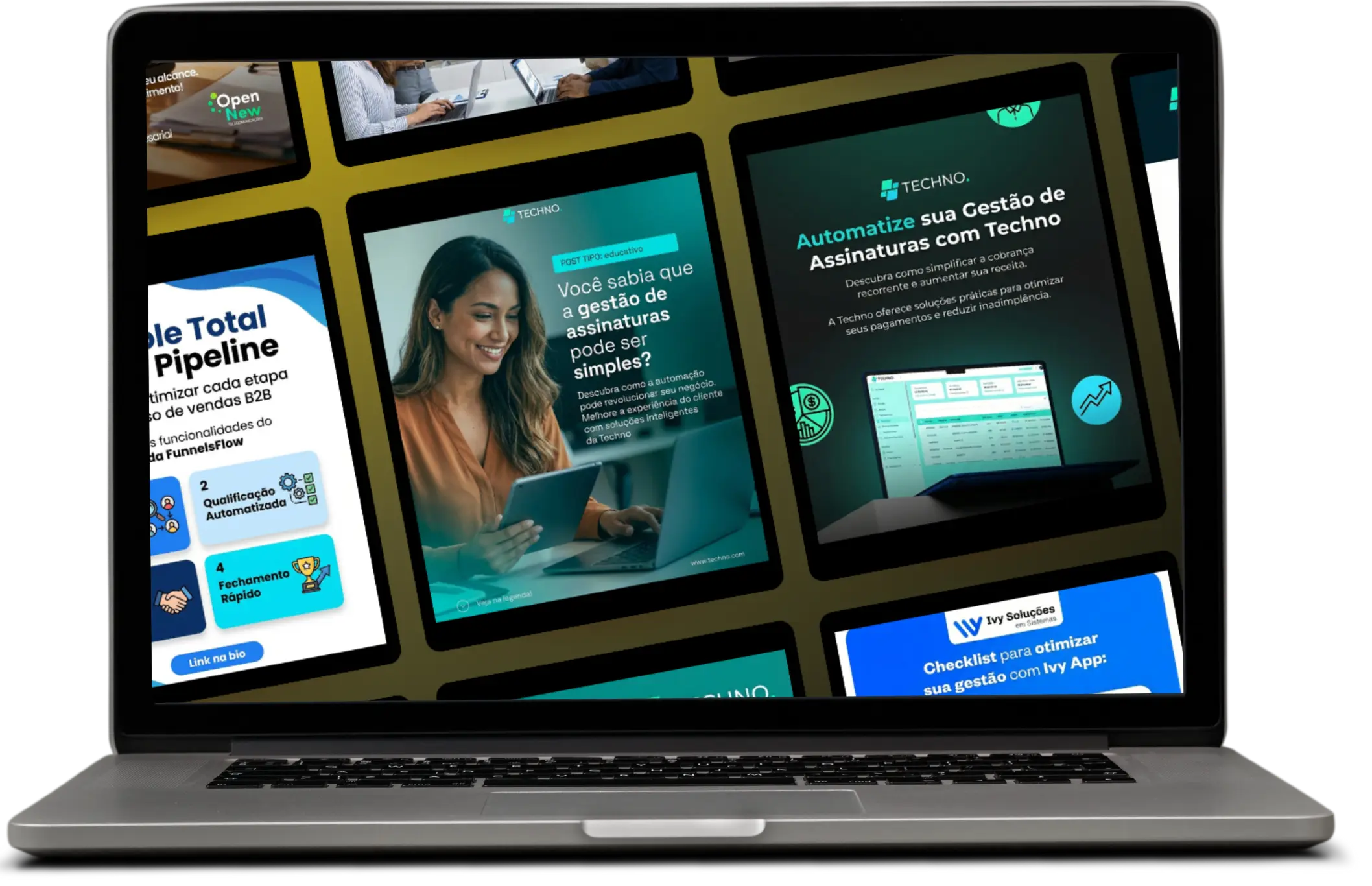 Enquanto um designer leva 2 dias, nossa tecnologia gera 50 variações em minutos. Seu marketing nunca mais vai parar por falta de criativo.